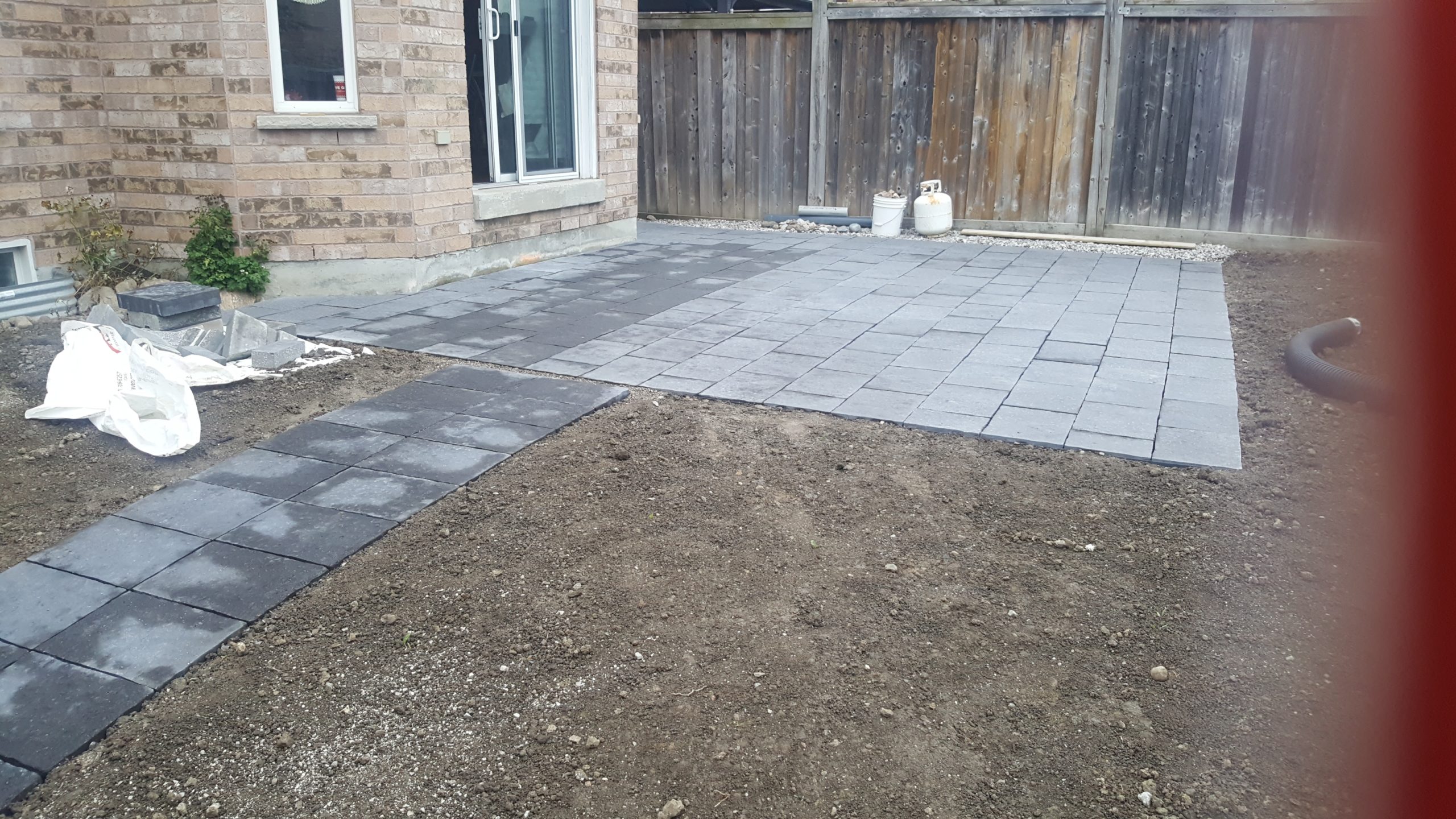 5) patio pavers and stone veneer on columns – trying to protect against dog pee!