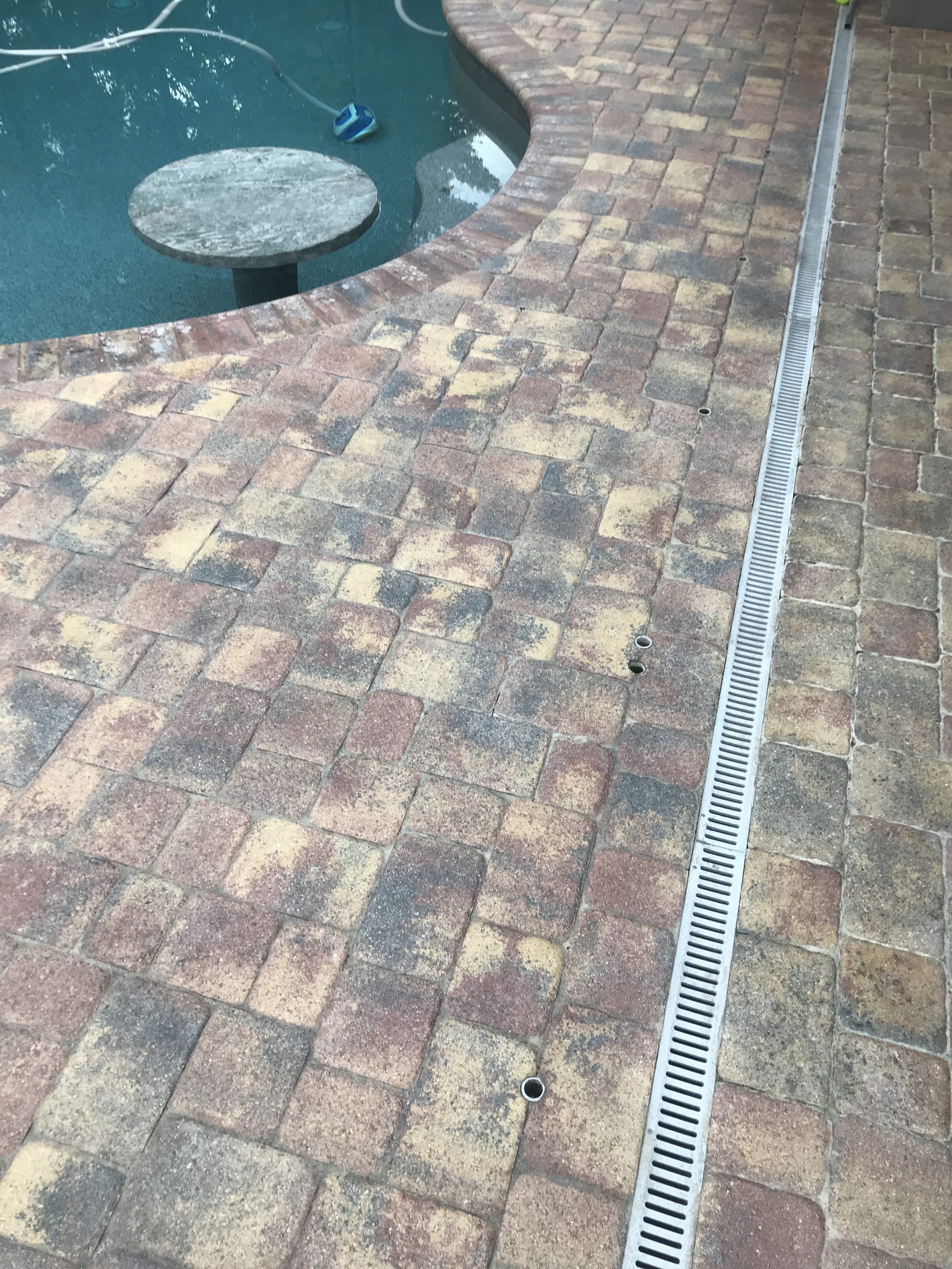 5. Newly installed White and Grey pool (chlorine) and lanai pavers under bird cage. Color enhancement – yes.