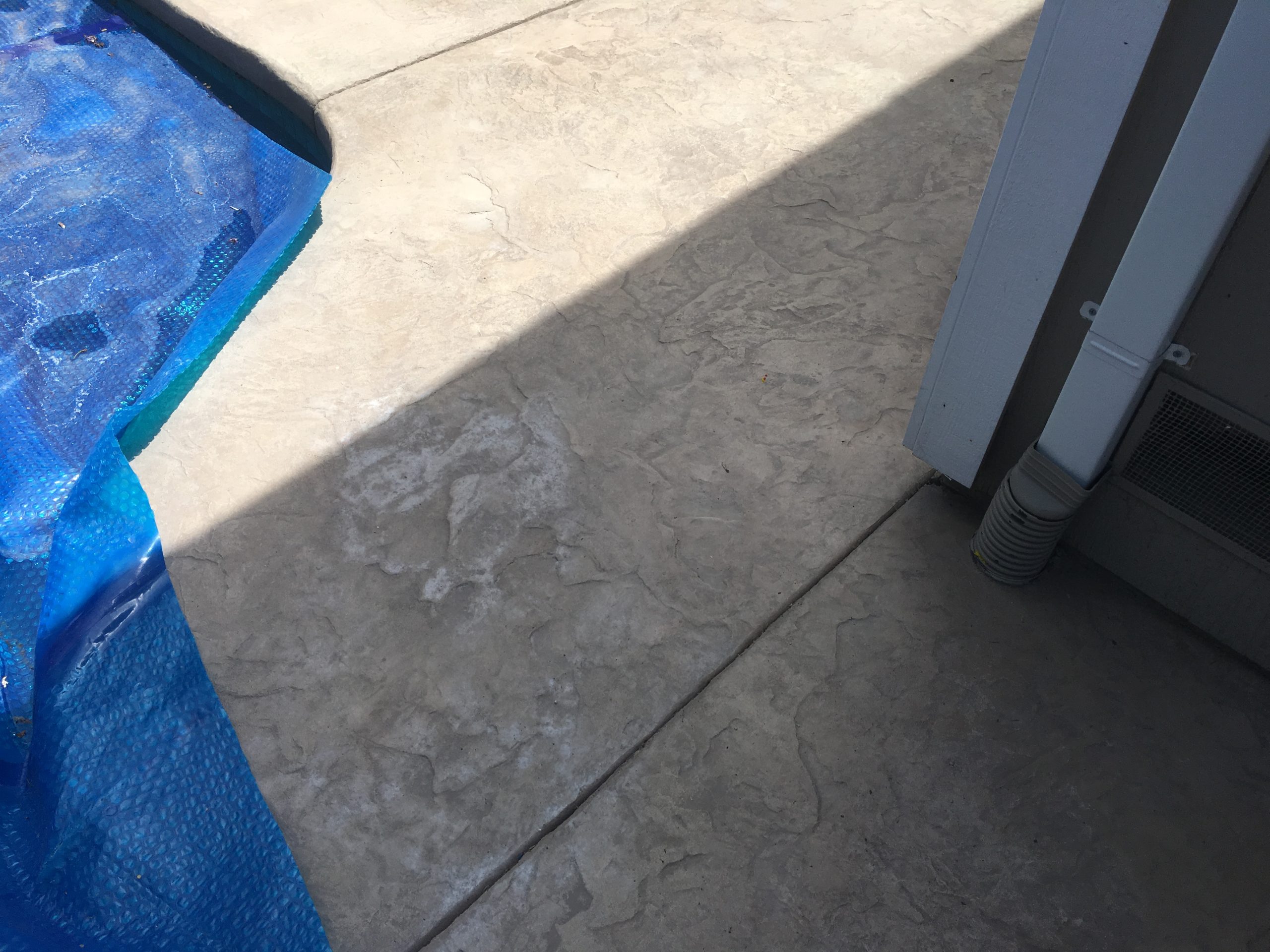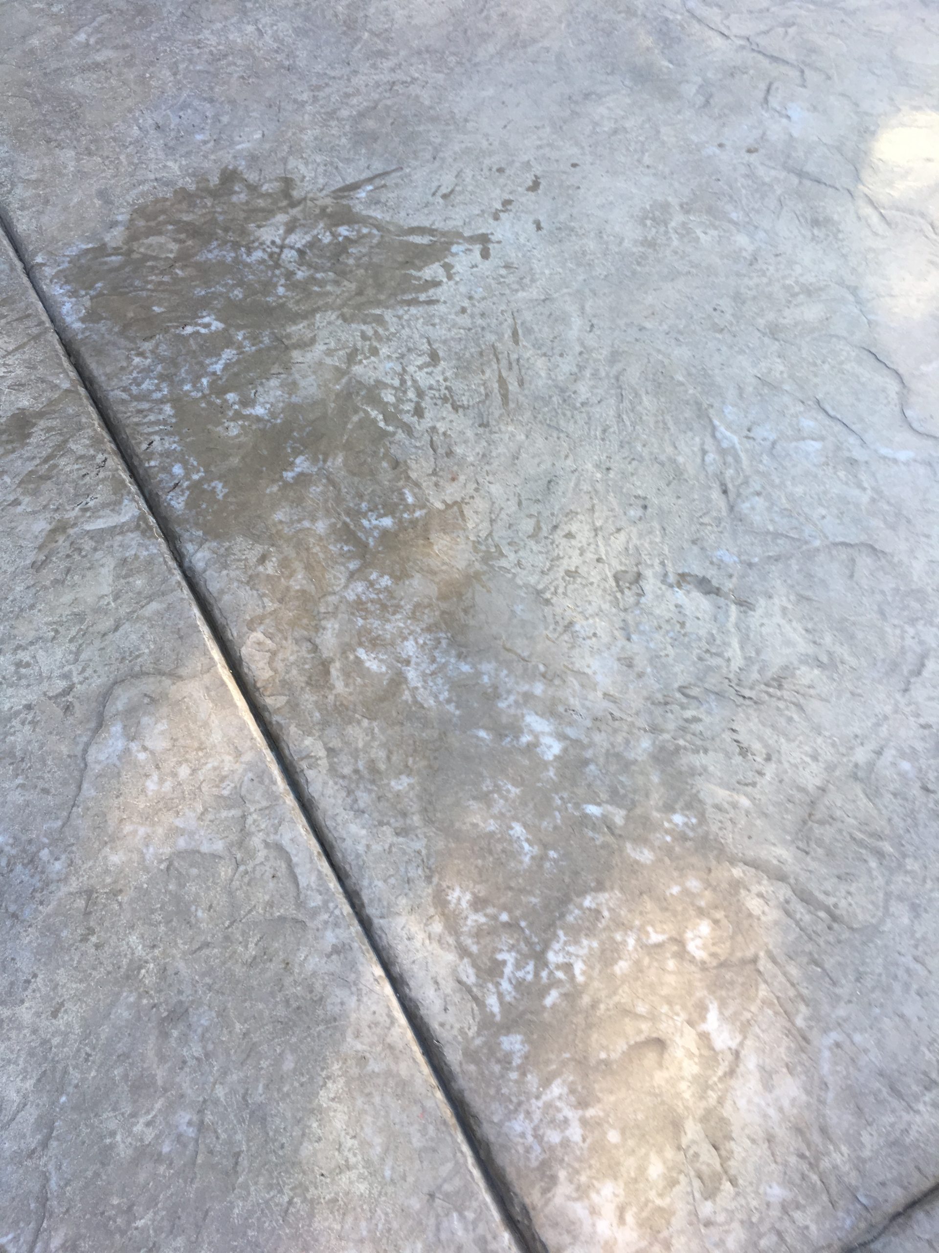 I have a stamped concrete patio. Last year we hired someone to put a sealer on it to brighten it up. It bubbled all over